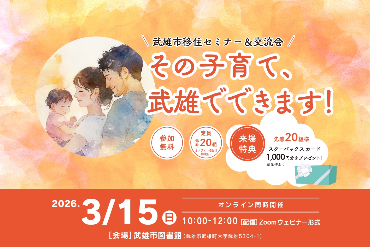 武雄市移住セミナー&交流会 〜その子育て、武雄でできます!〜 を開催します!